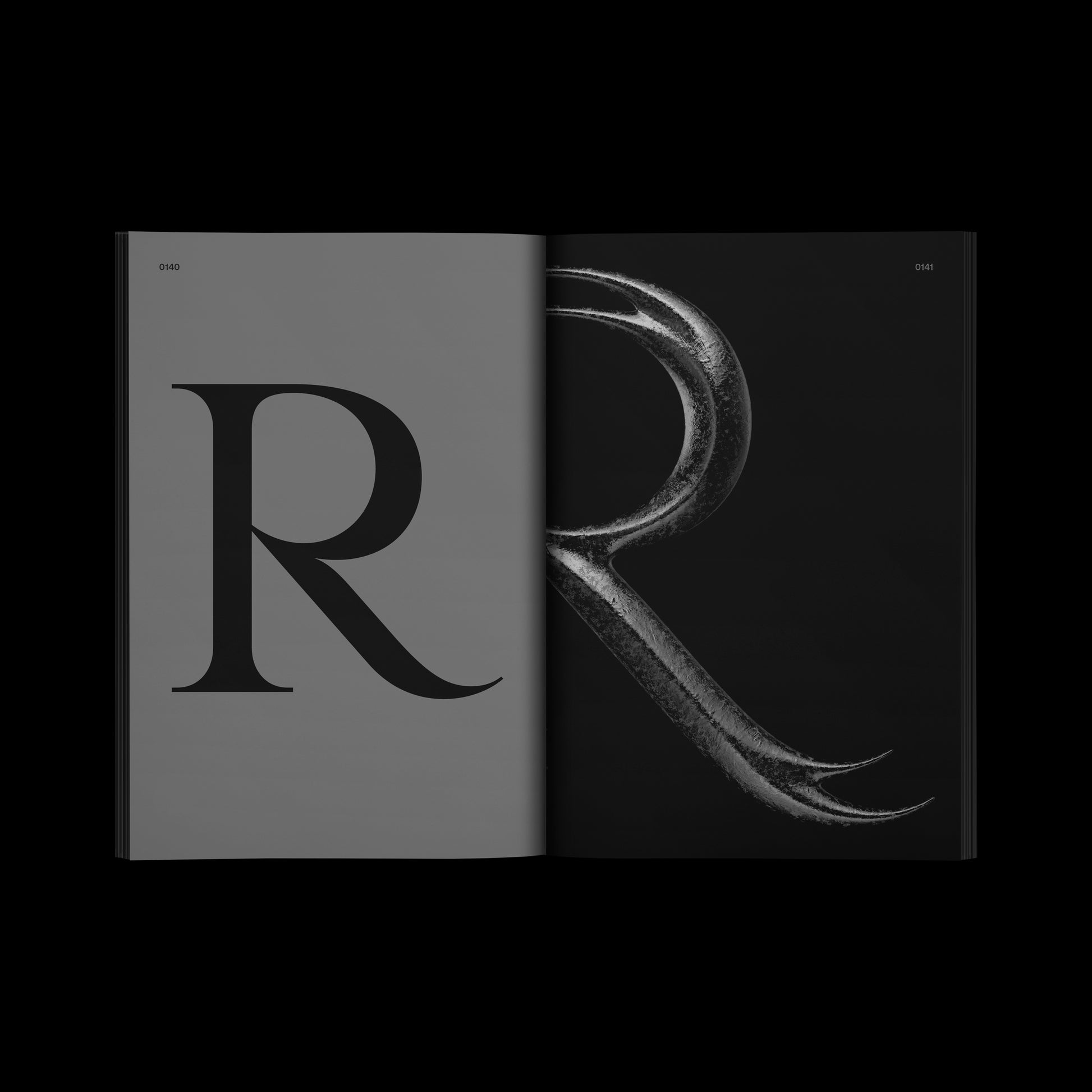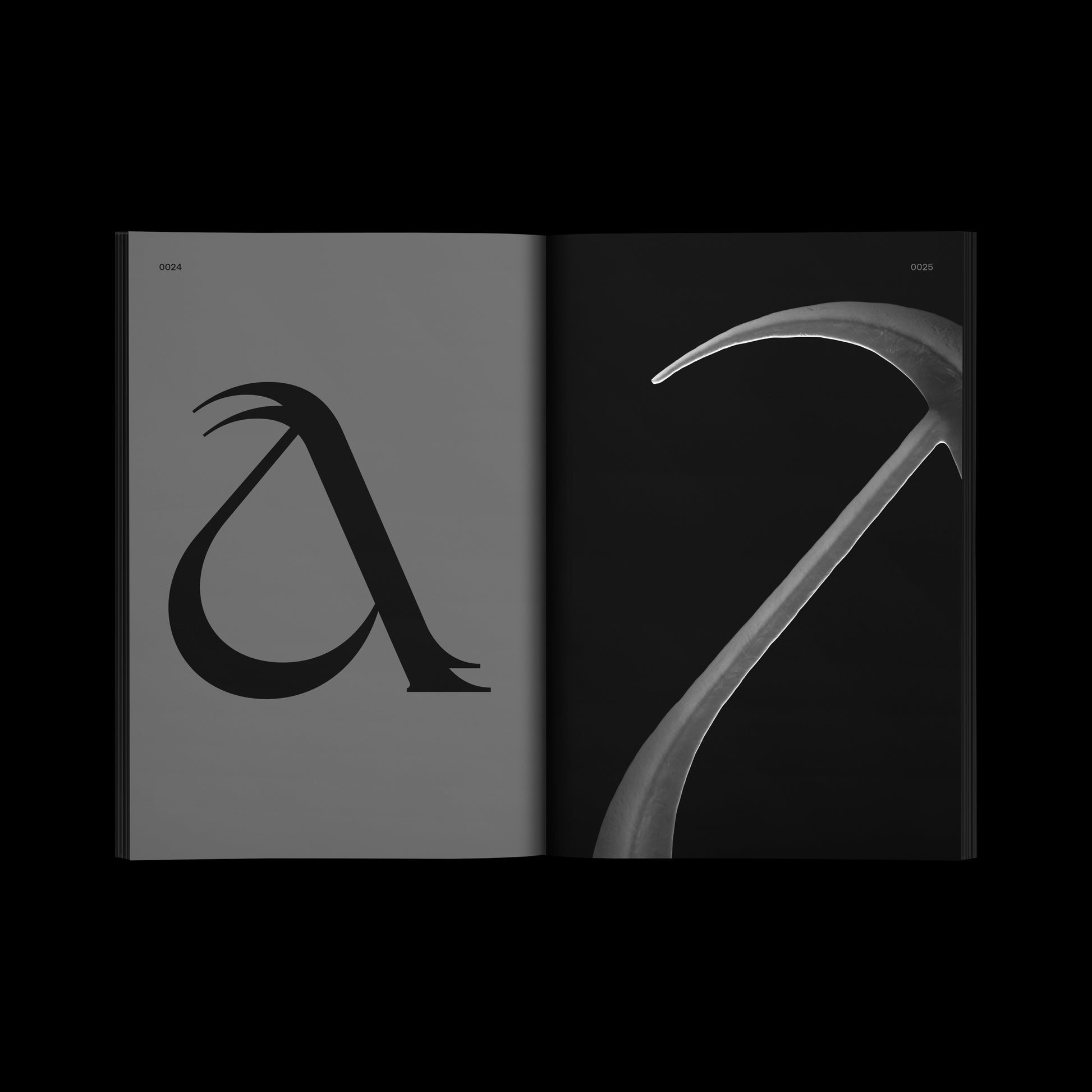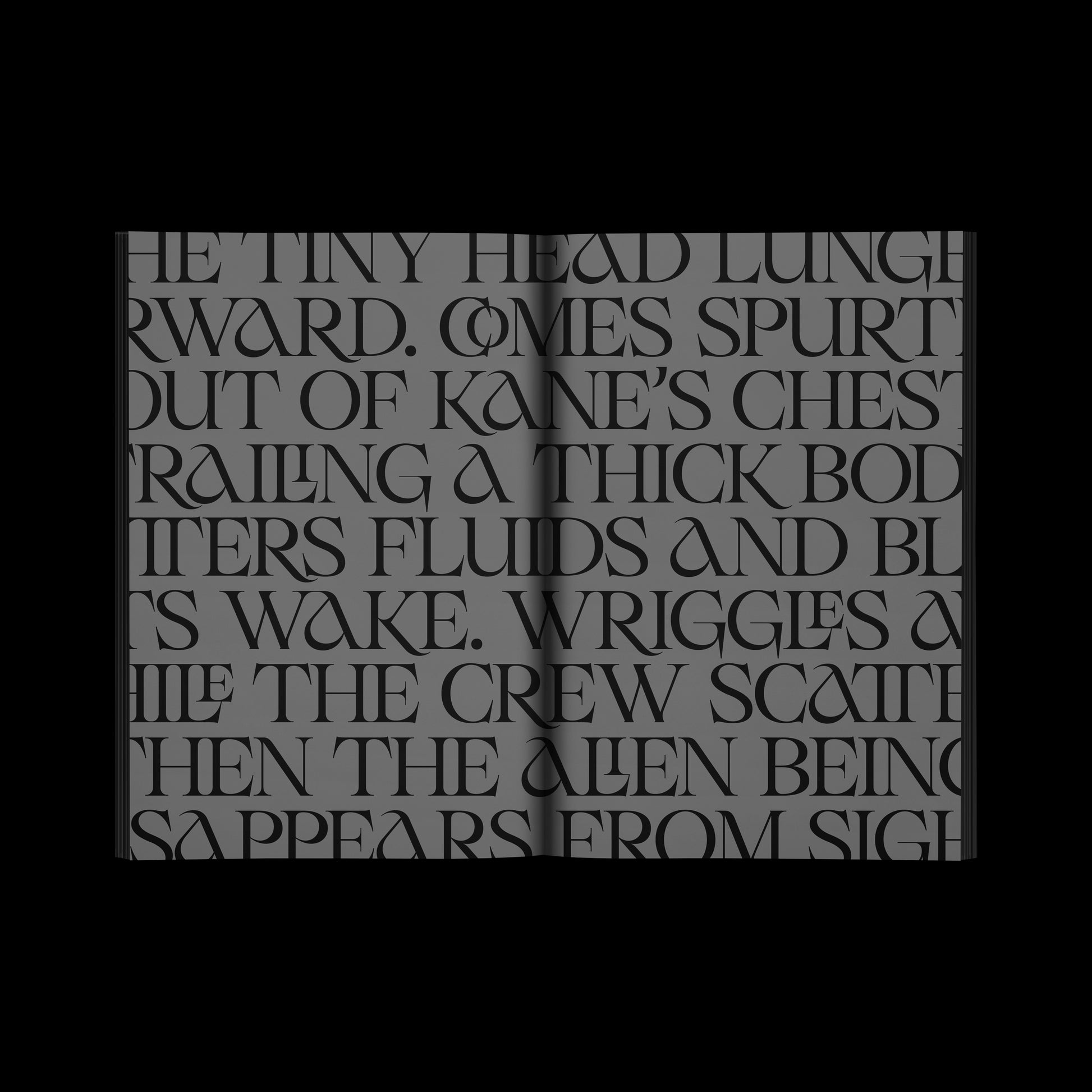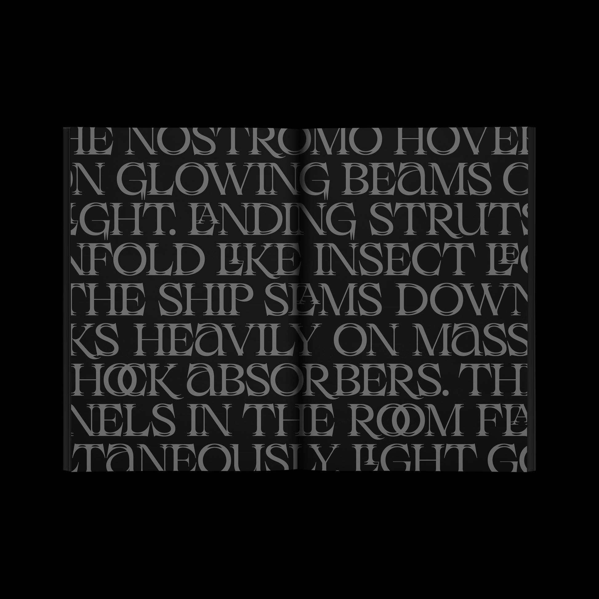 In this 200 page type specimen we showcase the font from A to Z with select render artwork and collaged extraterrestrial inspiration from the film and beyond.